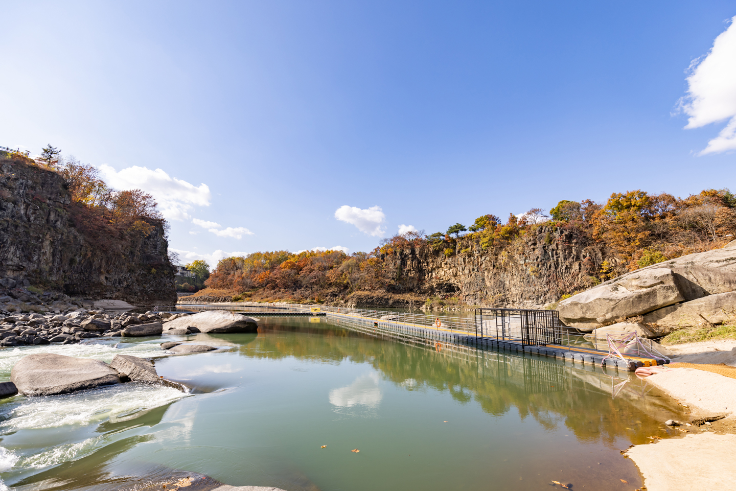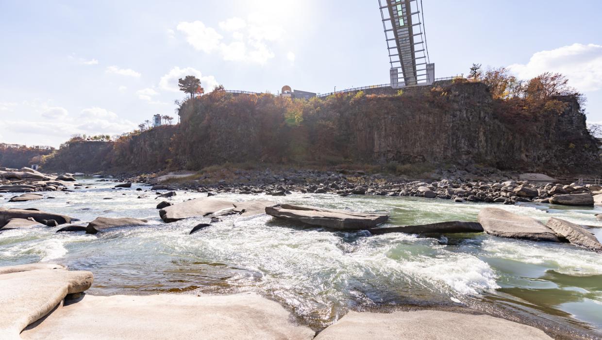 한탄강 물윗길은 유네스코 세계지질공원으로 인증된 한탄강의 주상절리를 물 위에서 감상할 수 있는 트래킹 코스다. #철원여행 #가족여행 #데이트코스 #산책 #경치 #도보코스